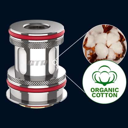 The 0.4 ohms GTR coils produce a generous amount of vapor and are recommended for use between 40W and 60W. The 0.15 ohm coils are ideal for those who prefer maximum vapor production, with a recommended wattage setting between 60W and 80W. These coils use organic cotton as a wick, which contributes to a longer lifespan and provides an enhanced flavor experience from the e-liquid.