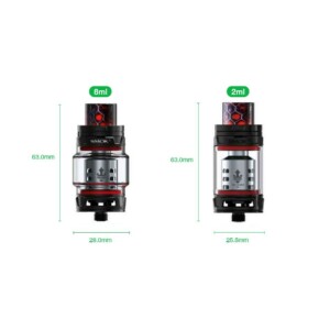 SMOK TFV12 Prince Cloud Beast Tank uses new, improved 12-hole coils to enhance the flow of e-juice to the cotton while reducing heat. It has a volume of 2ml (extra glass available for purchase to get a volume of 8ml), using the same swirl function as its predecessors to open the top for filling up with e-juice, difference is that you first press a button before you slide the cover aside, this prevents the cover from opening accidentally.