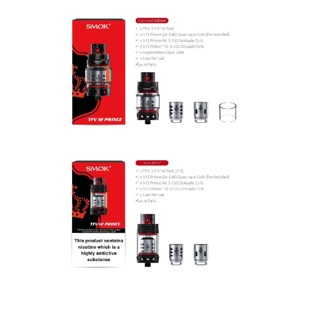 - 1x TFV12 PRINCE Tank (2ml)
